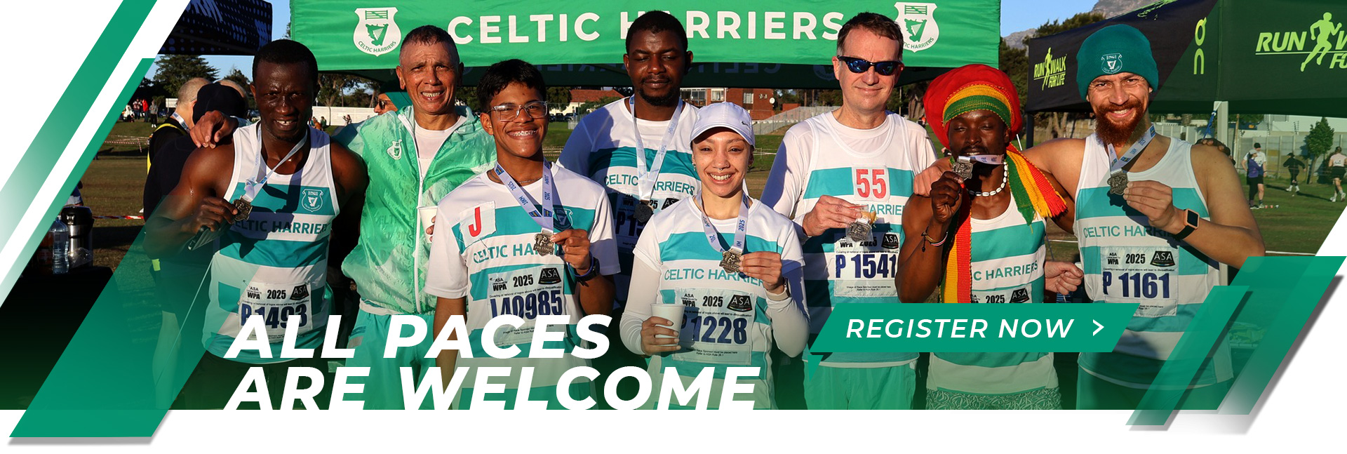 Established in 1906, Celtic Harriers is 5th oldest running club in the Western Cape. Based at Brookside in Claremont, Cape Town, Celtics has a proud history as the founder of the Western Cape’s biggest race, the Two Oceans Marathon. We also organise the Balwin Cape Peninsula Marathon and the Don Lock Memorial Road Race. But Celtic Harriers is about more than just running, we foster an active community through numerous regular club runs, walks, and social gatherings.