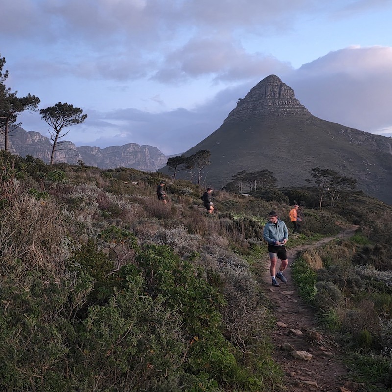 Our routes focus on maintaining a running pace (minimum pace 6min/km) rather than scrambling or climbing along highly technical trails. While we do encounter some uneven terrain and occasional technical sections, our emphasis remains on gravel paths, jeep tracks, and wider trails. Expect invigorating climbs and undulations to keep those leg muscles engaged. Our loops often wind through stunning locales including Constantia Nek, Cecilia Forest, Kirstenbosch, Newlands Forest, Devil’s Peak, Table Mountain, Lion’s Head, and Signal Hill. Join us for a fulfilling blend of scenic exploration and camaraderie!